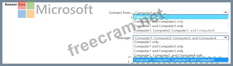 From which computers can you connect to Windows Admin Center, and which computers can you manage by using Windows Admin Center? To answer, select the appropriate options in the answer area.