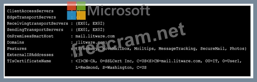 You run the Get-HybridConfiguration cmdlet and receive the output shown in the following exhibit.