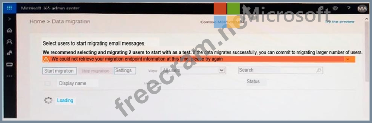 From the Microsoft 365 admin center, you open Data migration as shown in the following exhibit.