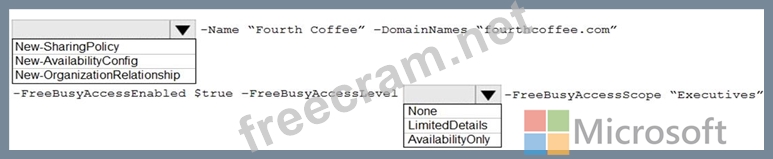 You need to ensure that the users at your company share free busy information with the users at Fourth Coffee. The solution must ensure that the meeting details included in the calendars of your company users remain hidden from the Fourth Coffee users.