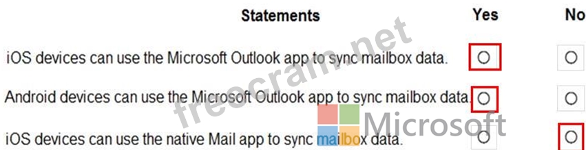 For each of the following statements, select Yes if the statement is true. Otherwise, select No.