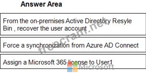 1 - From the on-premises Active Directory Resyle Bin , recover the user account