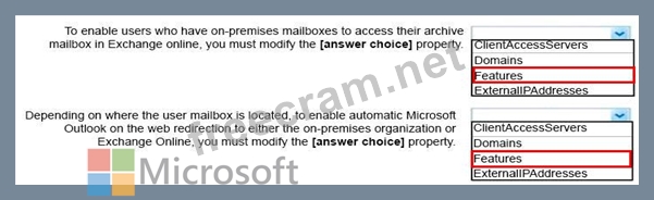 Question 40: You have a hybrid deployment between Microsoft Exchange Onli...