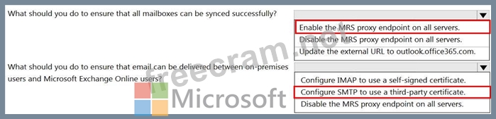 Question 40: You have a hybrid deployment between Microsoft Exchange Onli...