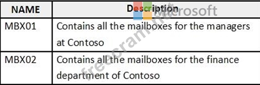 Your company named Contoso, Ltd. has a Microsoft Exchange Server 2019 organization that contains the mailbox databases shown in the following table.