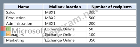 Question 55: You have a hybrid deployment between Microsoft Exchange Onli...