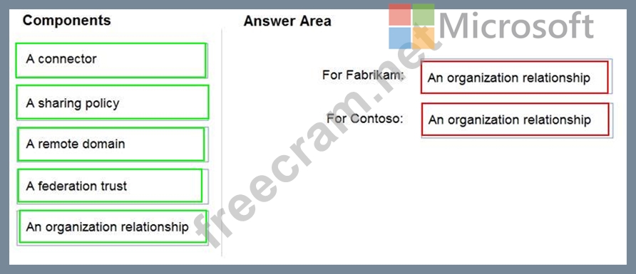 What should you configure? To answer, drag the appropriate components to the correct companies. Each component may be used once, more than once, or not at all. You may need to drag the split bar between panes or scroll to view content.