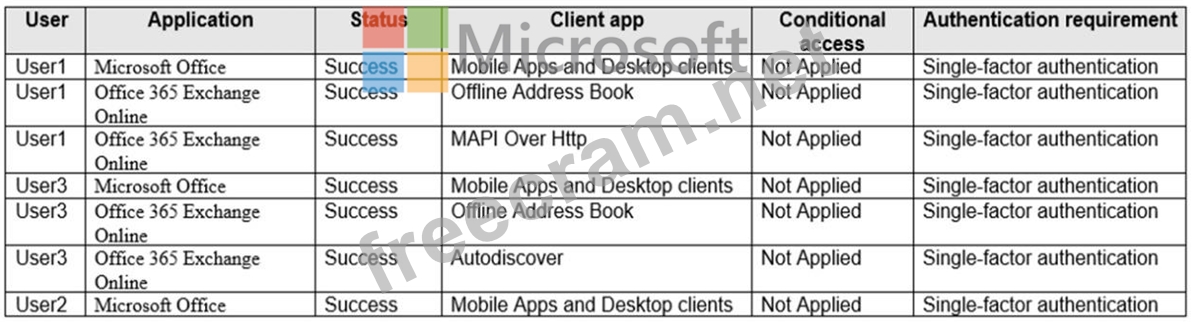 The Azure Active Directory (Azure AD) Sign-ins report is shown in the following table.