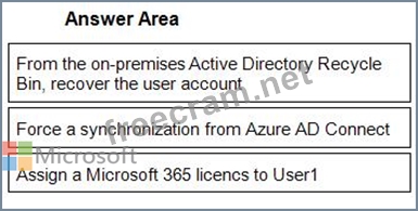 1 - From the on-premises Active Directory Recycle Bin, recover the user account