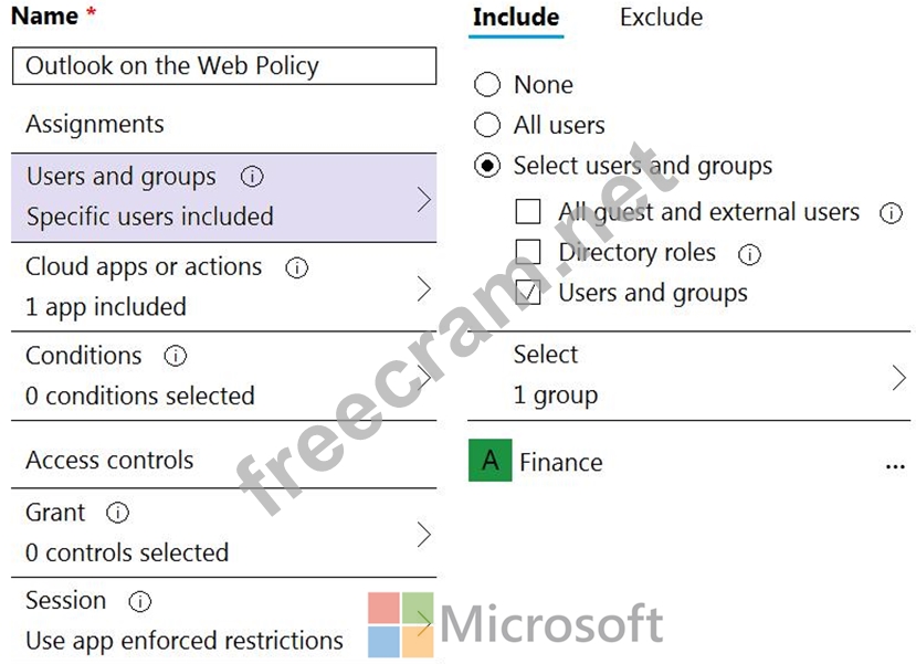 A conditional access policy is configured as shown in the following exhibit.