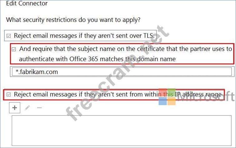 Email messages from a remote domain named fabrikam.com are received from a server that uses a wildcard certificate for fabrikam.com and are encrypted by using TLS.