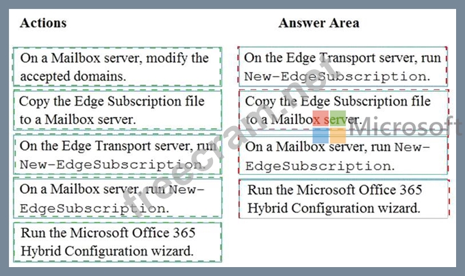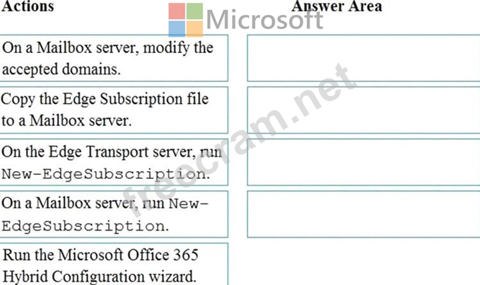 Which four actions should you perform in sequence? To answer, move the appropriate actions from the list of actions to the answer area and arrange them in the correct order.