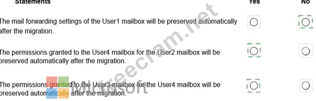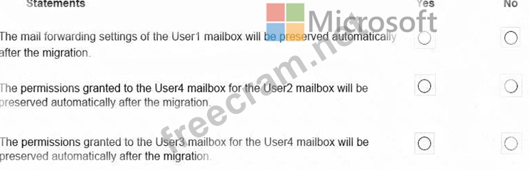 Question 82: You are migrating mailboxes from a Microsoft Exchange Server...