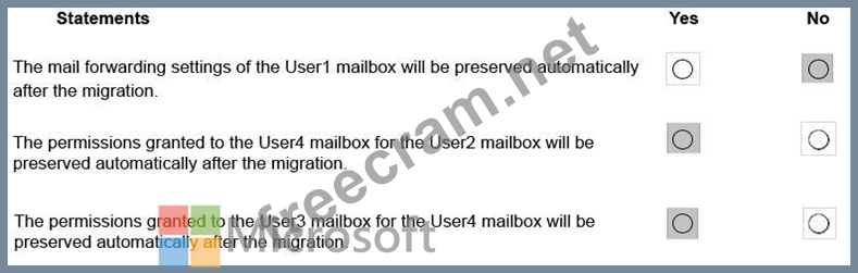 Question 55: You are migrating mailboxes from a Microsoft Exchange Server...