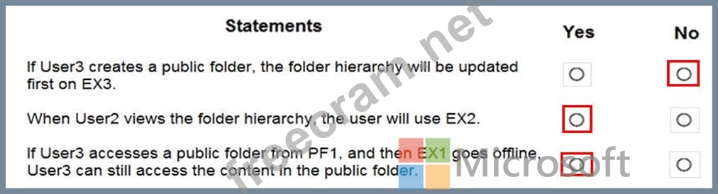 You create the public folder mailboxes shown in the following table.