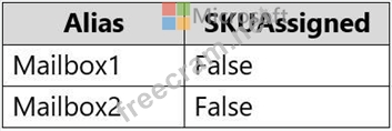 You receive the license status of each mailbox and discover the configurations shown in the following table.
