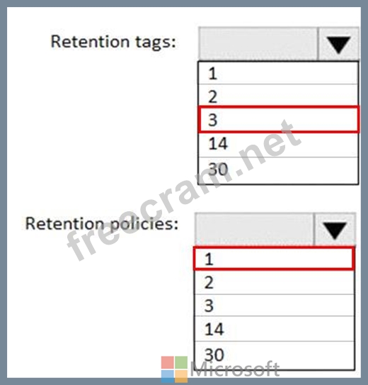 What is the minimum number of retention policies and retention tags you should use? To answer, select the appropriate options in the answer area.
