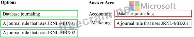 The company has two departments that have the mailboxes configured as shown in the following table.