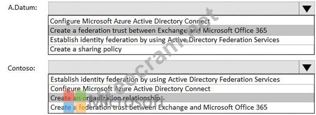Contoso works with a partner company named A.Datum Corporation. A.Datum has an Exchange Server 2016 organization that uses a domain named adatum.com.