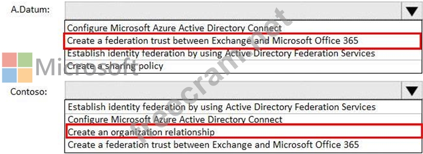 You need to ensure that users at Contoso can share their free/busy information with the users at A.Datum.