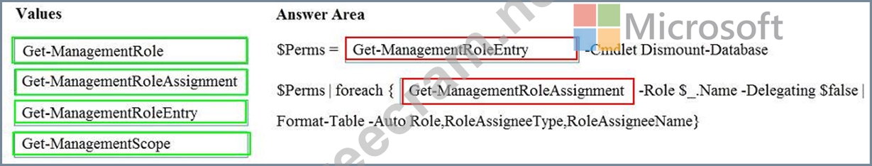 How should you complete the command? To answer, drag the appropriate values to the correct targets. Each value may he used once, more than once, or not at all. You may need to drag the split bar between panes or scroll to view content.