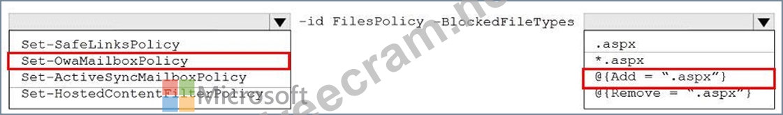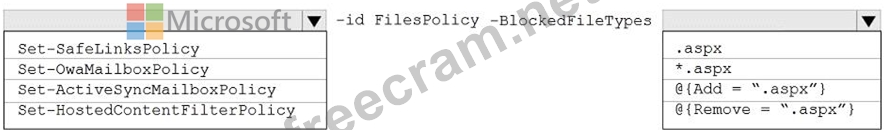 You need to modify FilesPolicy to prevent users from downloading ASPX files. The solution must meet the technical requirements.