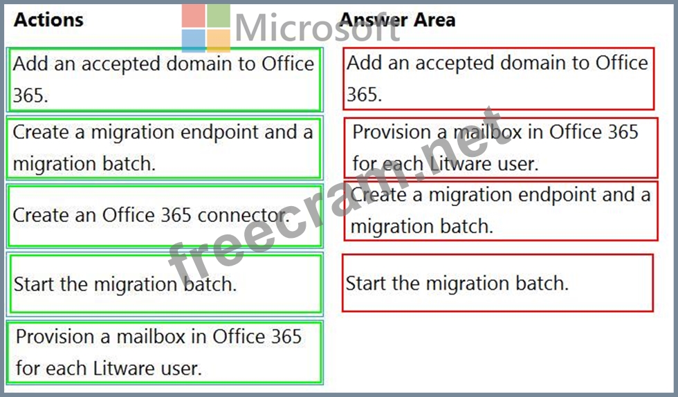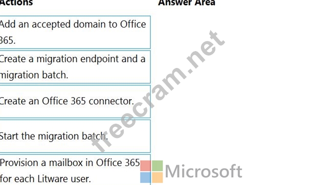 You need to migrate the mailboxes of Litware to Microsoft Office 365. The solution must ensure that users from Litware can receive email by using their current email address.