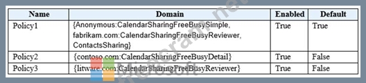 Your company named ADatum Corporation has a Microsoft Exchange Online subscription that contains the sharing policies shown in the following table.