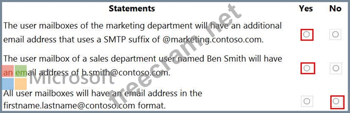 For each of the following statements, select Yes if the statement is true. Otherwise, select No.
