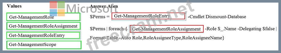 How should you complete the command? To answer, drag the appropriate values to the correct targets. Each value may he used once, more than once, or not at all. You may need to drag the split bar between panes or scroll to view content.