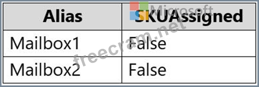 You receive the license status of each mailbox and discover the configurations shown in the following table.