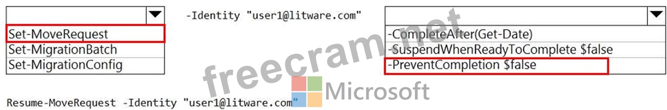 Later, you must complete the migration of a mailbox named [email protected] in the batch as soon as possible. You discover that the status of the migration batch is Syncing, but the status of the move request for [email protected] is Synced.