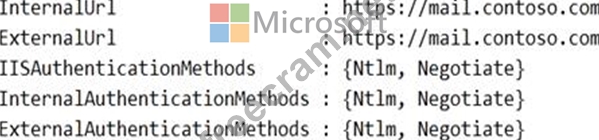 You retrieve the Exchange virtual directory settings, and you discover the following output.