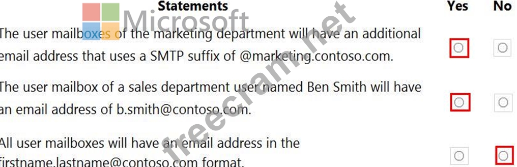 For each of the following statements, select Yes if the statement is true. Otherwise, select No.