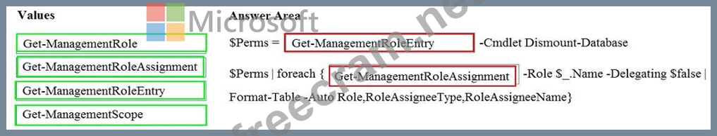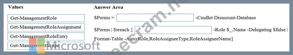 How should you complete the command? To answer, drag the appropriate values to the correct targets. Each value may he used once, more than once, or not at all. You may need to drag the split bar between panes or scroll to view content.
