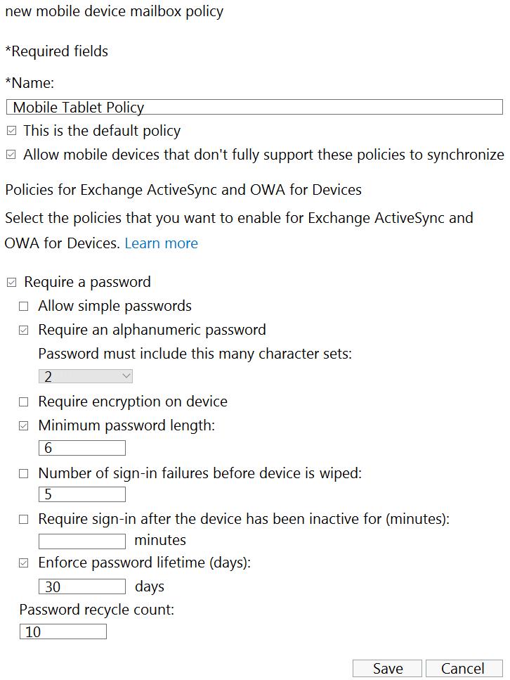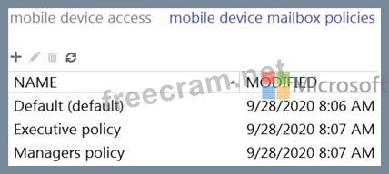 Mobile device mailbox policies are configured as shown in the following exhibit.