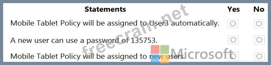 For each of the following statements, select Yes if the statement is true. Otherwise, select No.