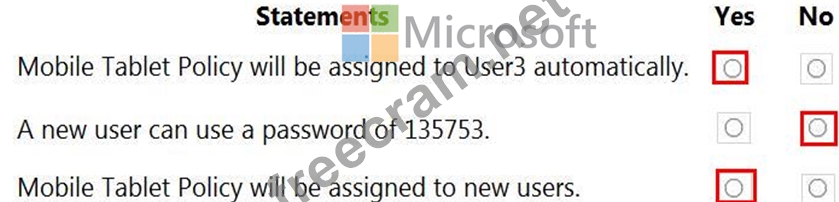 For each of the following statements, select Yes if the statement is true. Otherwise, select No.