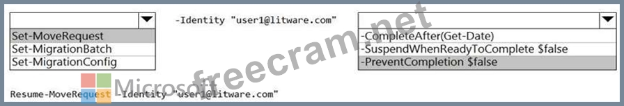 Later, you must complete the migration of a mailbox named [email protected] in the batch as soon as possible. You discover that the status of the migration batch is Syncing, but the status of the move request for [email protected] is Synced.