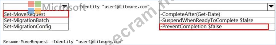 Later, you must complete the migration of a mailbox named [email protected] in the batch as soon as possible. You discover that the status of the migration batch is Syncing, but the status of the move request for [email protected] is Synced.