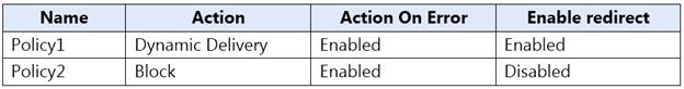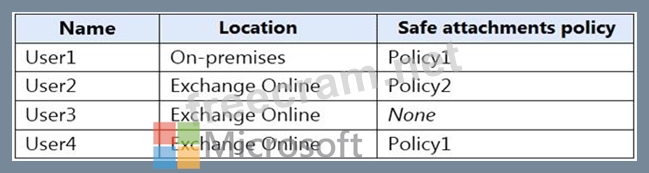 You have safe attachments policies configured as shown in the following table.