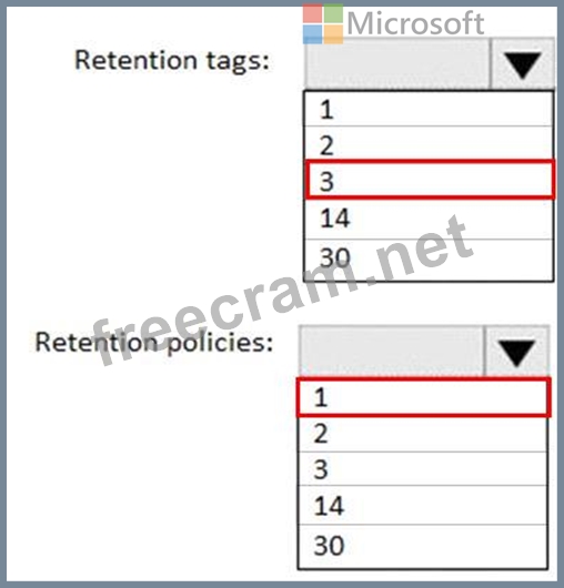 What is the minimum number of retention policies and retention tags you should use? To answer, select the appropriate options in the answer area.