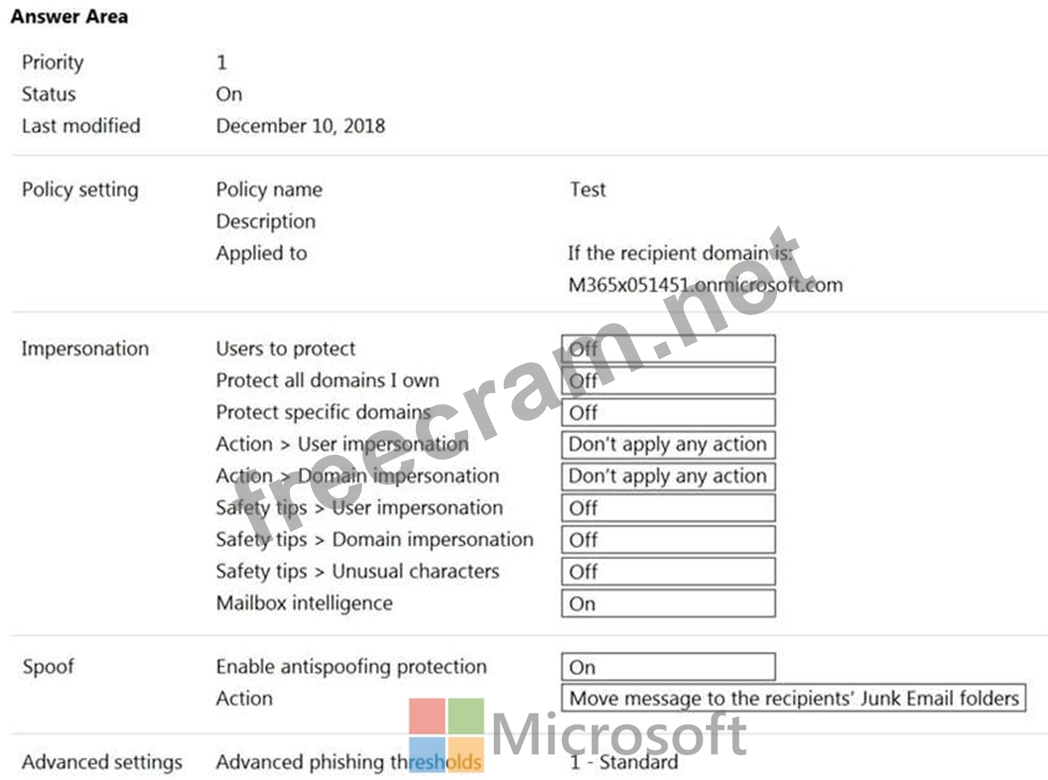 Question 77: You have an Exchange Online tenant that has the anti-spam se...
