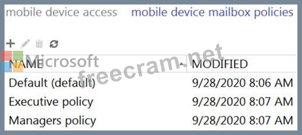 Mobile device mailbox policies are configured as shown in the following exhibit.