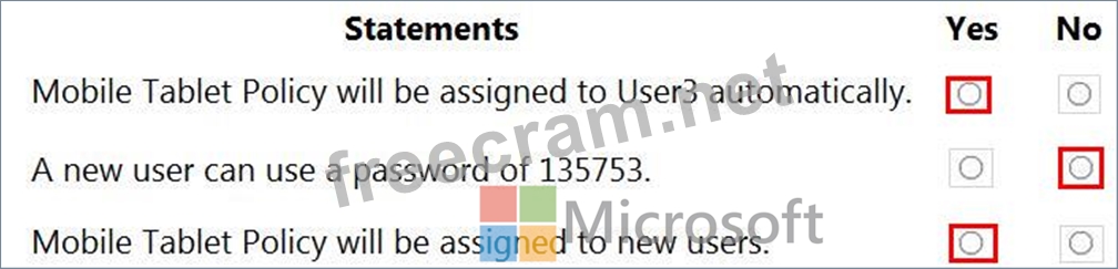 For each of the following statements, select Yes if the statement is true. Otherwise, select No.