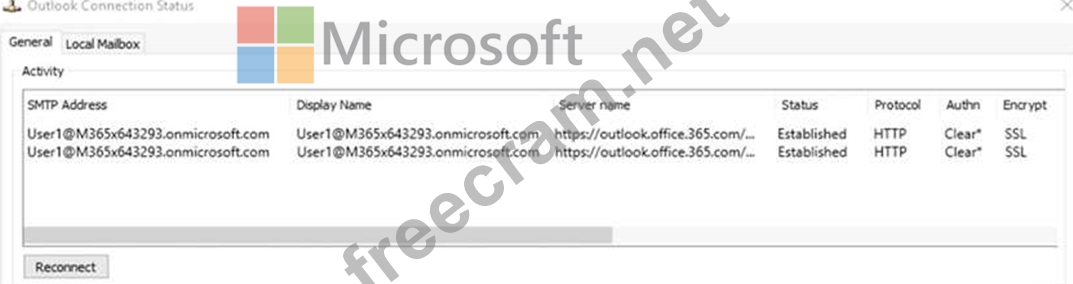 The Outlook Connection Status for User1 is shown in the following exhibit.