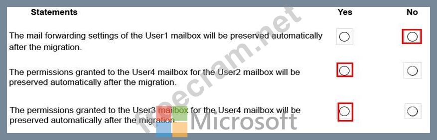 Question 4: You are migrating mailboxes from a Microsoft Exchange Server...