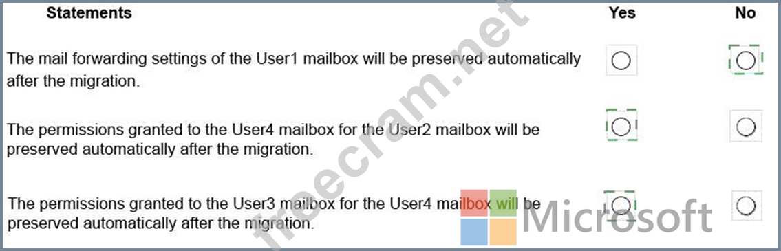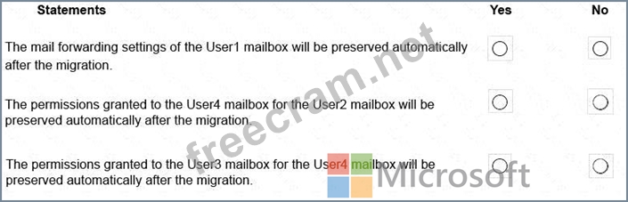 Question 4: You are migrating mailboxes from a Microsoft Exchange Server...