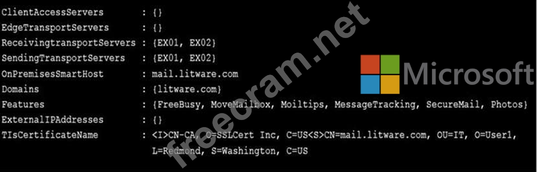 You run the Get-HybridConfiguration cmdlet and receive the output shown in the following exhibit.