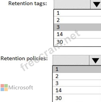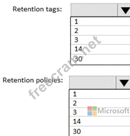 What is the minimum number of retention policies and retention tags you should use? To answer, select the appropriate options in the answer area.